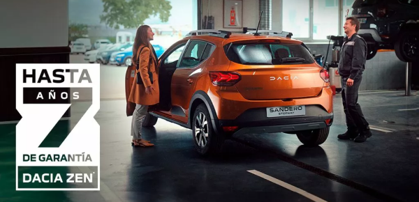 (*) Garantía Dacia ZEN: 1 año de garantía para tu Dacia por cada revisión en Dacia Service. Cobertura máxima 7 años o 150.000km (lo que antes ocurra). Excepto taxis, VTC, autoescuelas, rac y servicio público.